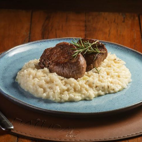 Medalhao de mignom acompanhado de risoto de queijo brie