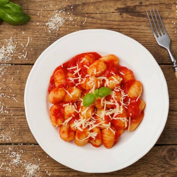 Nosso nhoque de batata inglesa, preparado com carinho e dedicação. Oferecemos a você a liberdade de escolher seu molho favorito. Serve 1 pessoa, aproximadamete 500g.