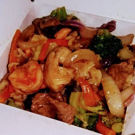 Macarrão Especial, Repolho Roxo, Repolho Verde, Pimentão Vermelho, Pimentão Verde, Pimentão Amarelo, Cenoura, Brócolis, Couve-flor Cebola, Salsa e Cebolinha, muito Camarão e Molho Shoyu.