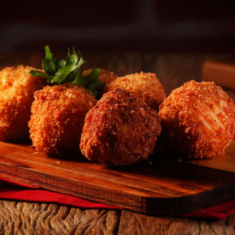Arancini - 6 Unidades Bolinhos crocantes de arroz recheados com mussarela, empanados e servidos quentinhos com manjericão fresco. Perfeitos para um aperitivo leve e cheio de sabor! Comida Italiana, Massas Artesanais, Culinária Italiana, Penne, Espaguete, Gnocchi, Risoto De Salmão, Polenta Italiana, Frango Parmegiana, Salmão Grelhado, Batata Frita, Coca Cola, Guaraná Antártica, Entrega Gratis.