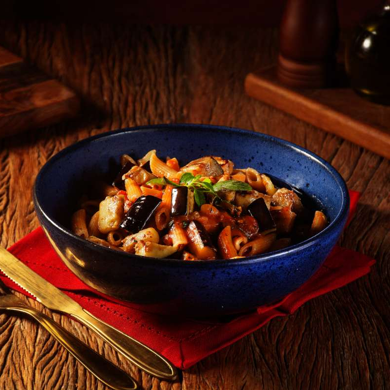 Penne com berinjela grelhada e molho de tomate. Sabor e saúde no mesmo prato. Comida Italiana, Restaurante Italiano, Massas Artesanais, Culinária Italiana, Massas Frescas, Penne, Espaguete, Gnocchi, Risoto De Salmão, Polenta Italiana, Frango Parmegiana, Salmão Grelhado, Bruschetta Italiana, Batata Frita Crocante, Coca Cola, Guaraná Antártica, Entrega Gratis, Delivery De Massas.