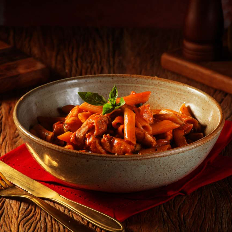 Penne com calabresa e molho de tomate. Um prato com um toque apimentado. Comida Italiana, Restaurante Italiano, Massas Artesanais, Culinária Italiana, Massas Frescas, Penne, Espaguete, Gnocchi, Risoto De Salmão, Polenta Italiana, Frango Parmegiana, Salmão Grelhado, Bruschetta Italiana, Batata Frita Crocante, Coca Cola, Guaraná Antártica, Entrega Gratis, Delivery De Massas.