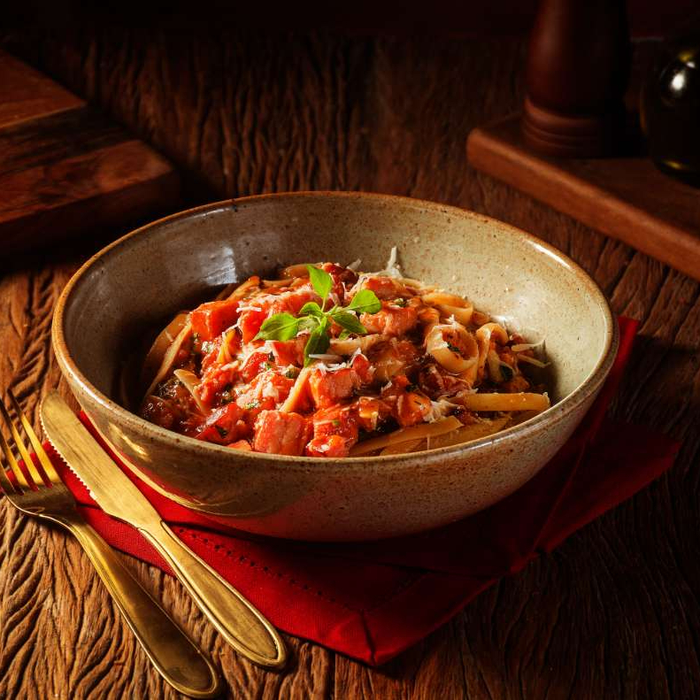 Fettuccine envolvido em molho pomodoro, com cebola roxa caramelizada, pancetta crocante e queijo pecorino, criando uma combinação saborosa e irresistível. Comida Italiana, Massas Artesanais, Culinária Italiana, Penne, Espaguete, Gnocchi, Risoto De Salmão, Polenta Italiana, Frango Parmegiana, Salmão Grelhado, Batata Frita, Coca Cola, Guaraná Antártica, Entrega Gratis.