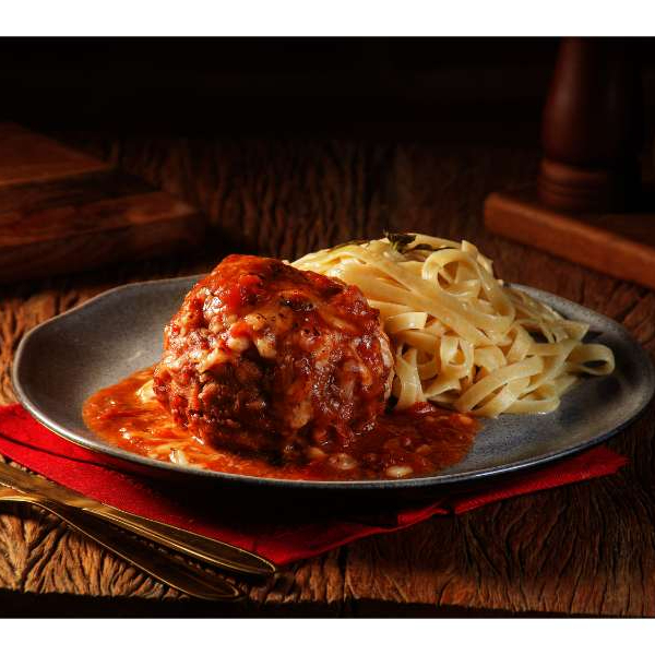 Polpetone recheado com mozzarella, empanado e coberto com molho sugo caseiro e parmesão gratinado, servido com fettuccine al dente. Comida Italiana, Restaurante Italiano, Massas Artesanais, Culinária Italiana, Massas Frescas, Penne, Espaguete, Gnocchi, Risoto De Salmão, Polenta Italiana, Frango Parmegiana, Salmão Grelhado, Bruschetta Italiana, Batata Frita Crocante, Coca Cola, Guaraná Antártica, Entrega Gratis, Delivery De Massas.