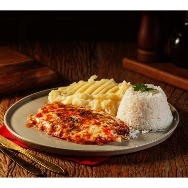 Frango à parmegiana com arroz branco e purê de batatas. Um prato clássico e delicioso. Comida Italiana, Restaurante Italiano, Massas Artesanais, Culinária Italiana, Massas Frescas, Penne, Espaguete, Gnocchi, Risoto De Salmão, Polenta Italiana, Frango Parmegiana, Salmão Grelhado, Bruschetta Italiana, Batata Frita Crocante, Coca Cola, Guaraná Antártica, Entrega Gratis, Delivery De Massas.