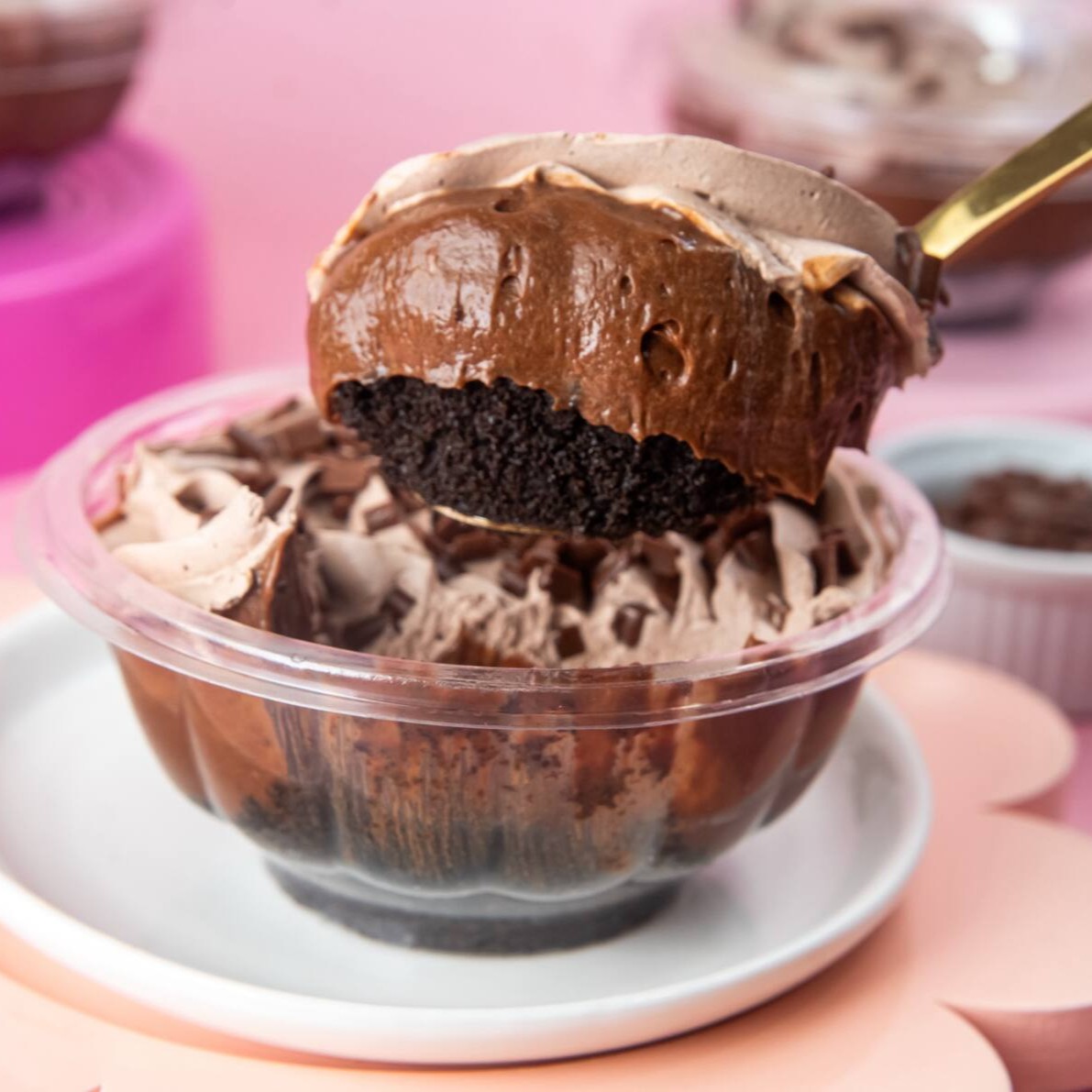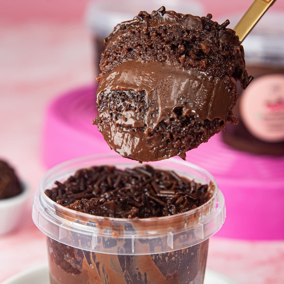 Delicie-se com nosso bolo de pote de brigadeiro! Com 50% de cacau, sua massa é ultra macia e o brigadeiro, irresistivelmente cremoso. Uma explosão de sabores que vai deixar os amantes do chocolate completamente apaixonados!