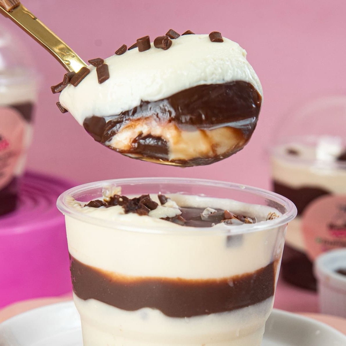 Aquele pavê tradicionalmente servido após o almoço de domingo na casa da vovó: Creme branquinho (a base de leite Ninho), biscoitos de maisena e uma deliciosa ganache de chocolate blend para dar um toque todo especial. Cremoso, docinho na medida certa e extremamente viciante!