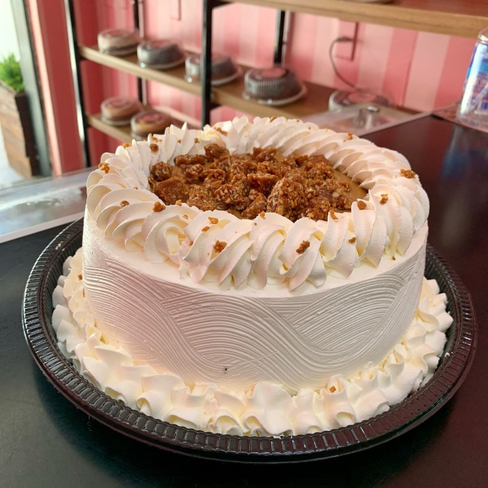Delicioso bolo de baunilha com granulados pretos. Super fofo e irresistível. Feito com ingredientes frescos, sem conservantes. Experimente essa maravilha! SERVE DE 8 a 10 FATIAS.