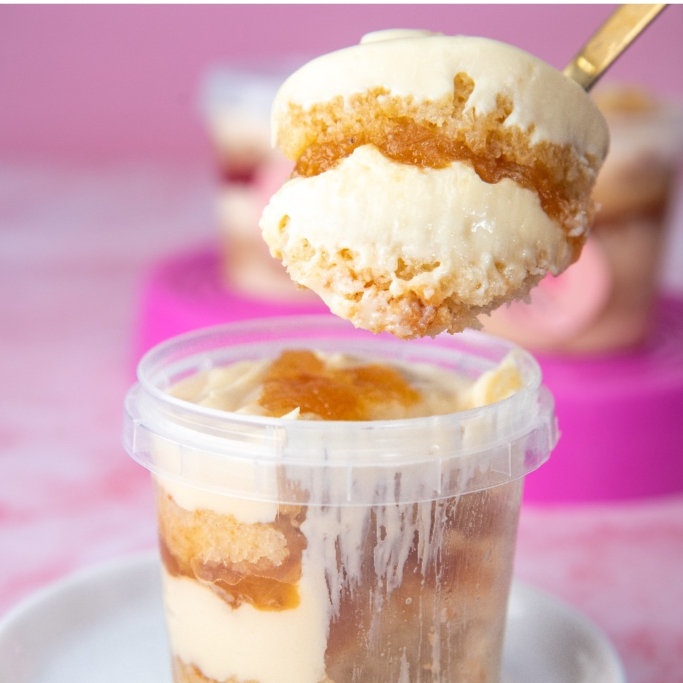 Descubra o sabor irresistível da nossa massa de baunilha super fofinha e úmida, combinada com um creme de leite ninho ultra cremoso e uma deliciosa compota de abacaxi. Uma explosão de sabor que derrete na boca! Pote 220ml.