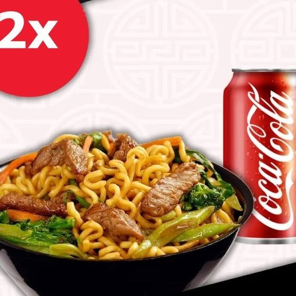 2 Yakisobas De Carne + 2 Coca Cola Lata