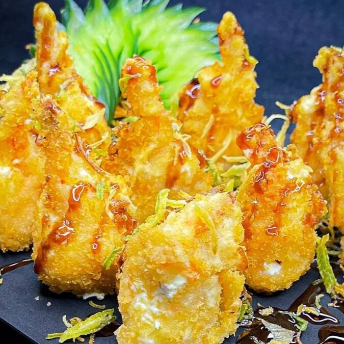 Delicioso, crocante recheado com camarão e cream cheese, finalizado com um camarão inteiro por cima. Porção com 10 unidades