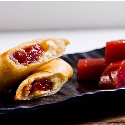 massa de harumaki, recheada de queijo e goiabada