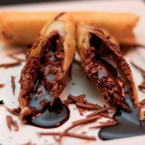 massa de harumaki, recheada de chocolate garoto