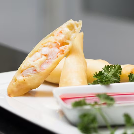 Rolinhos recheados com camarão suculento e catupiry cremoso, combinação perfeita de sabor e textura. - porção 2 unidades