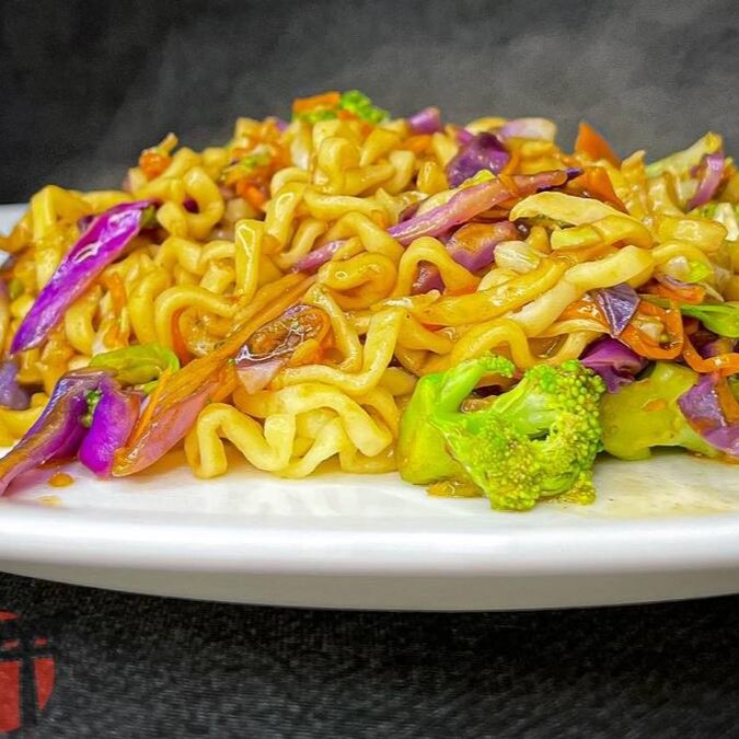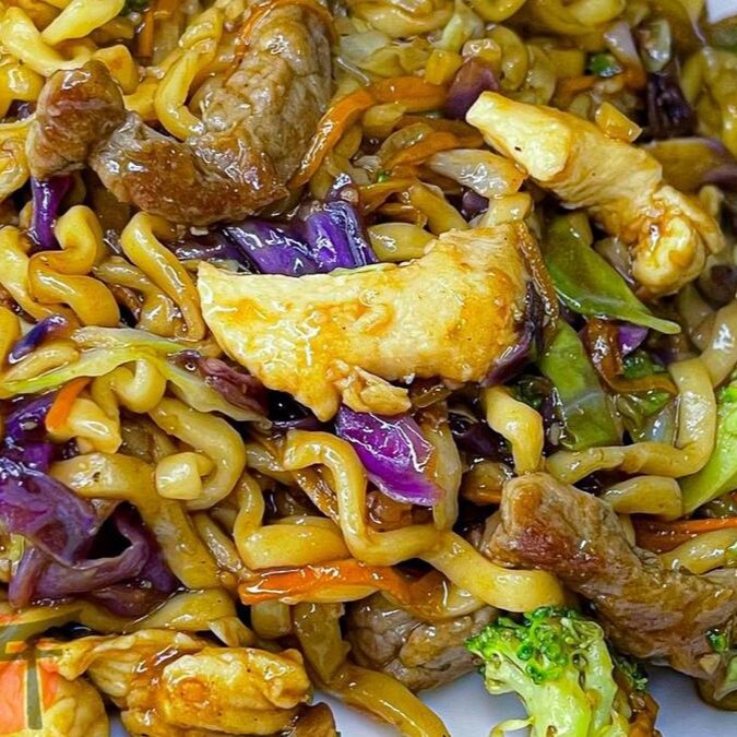 Macarrão japonês salteado com carne, frango e legumes frescos, temperado na medida certa, leve, suculento e cheio de sabor. - peso aproximado exceto seja opção "sem vegetais"