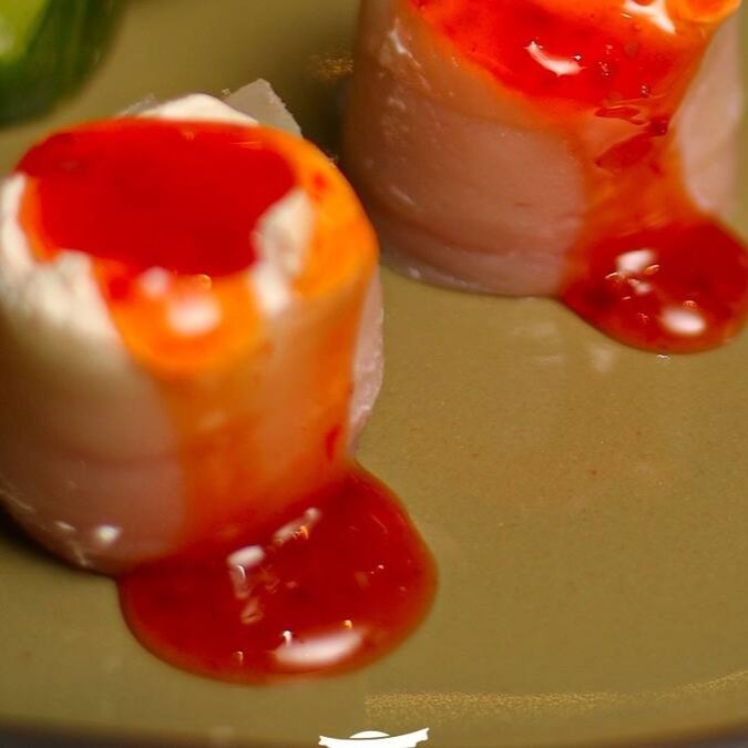 Rolinhos recheados com salmão fresco e catupiry cremoso, sabor delicado e irresistível. - porção 2 unidades