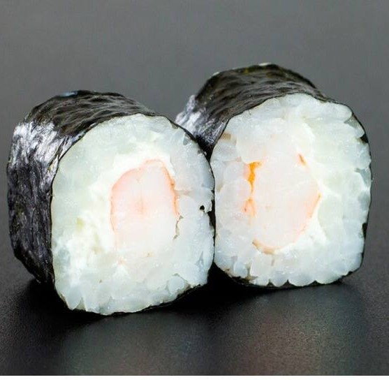 Makimono enrolado em alga com recheio simples de camarão fresco, cream cheese, sabor delicado. - porção com 10 unidades