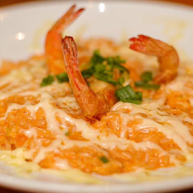 Risoto cremoso de camarão selecionados, preparado com arroz, mussarela e manteiga, trazendo sabor marcante e textura irresistível.
