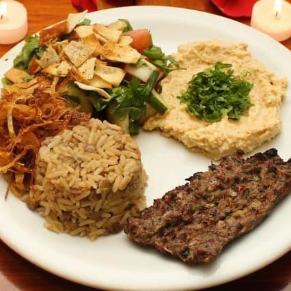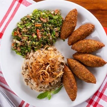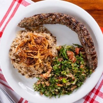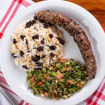 Kafta de Carne de Carneiro. Escolha o seu Arroz e seu acompanhamento. Prato Executivo.