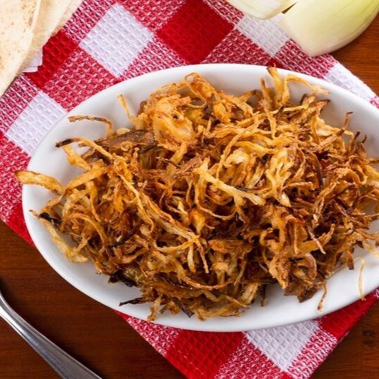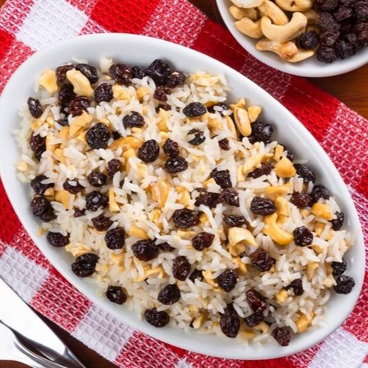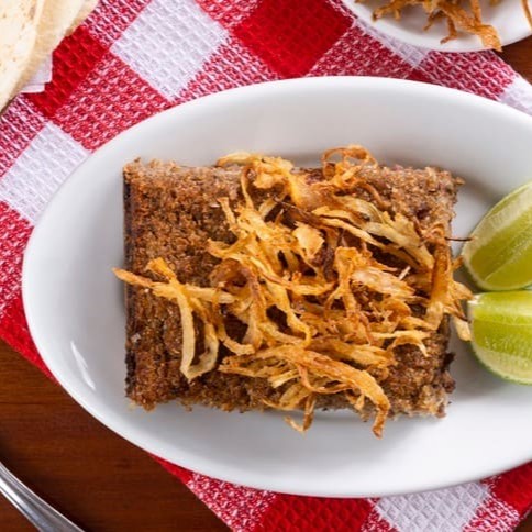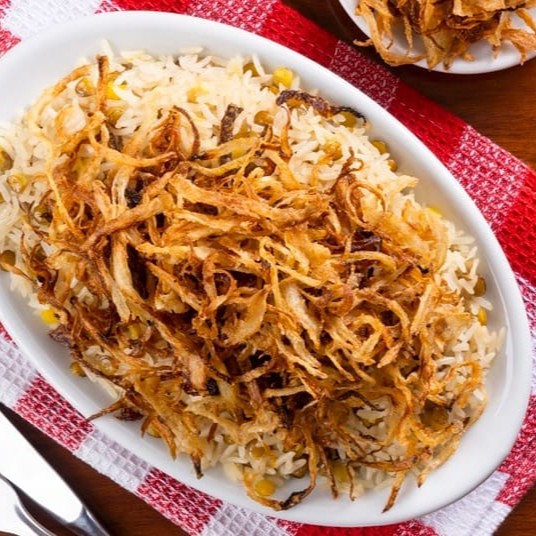 Acompanha Arroz com Lentilhas ou Passas e castanhas e Cebola Frita. Obs: Escrever em observações o arroz escolhido.