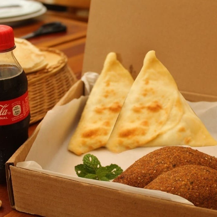 2 Esfirras, 2 kibes e 1 Coca 200ml ou Pudim de Leite.