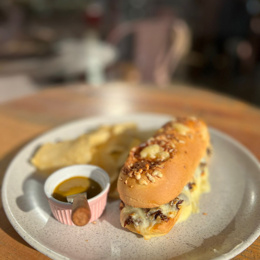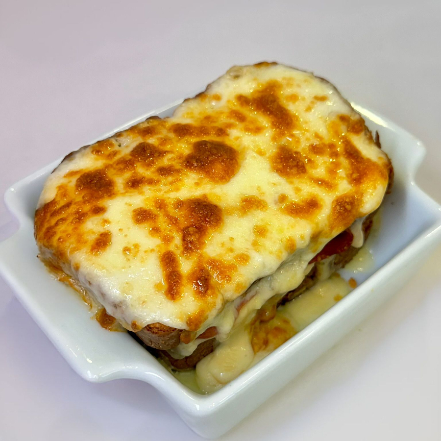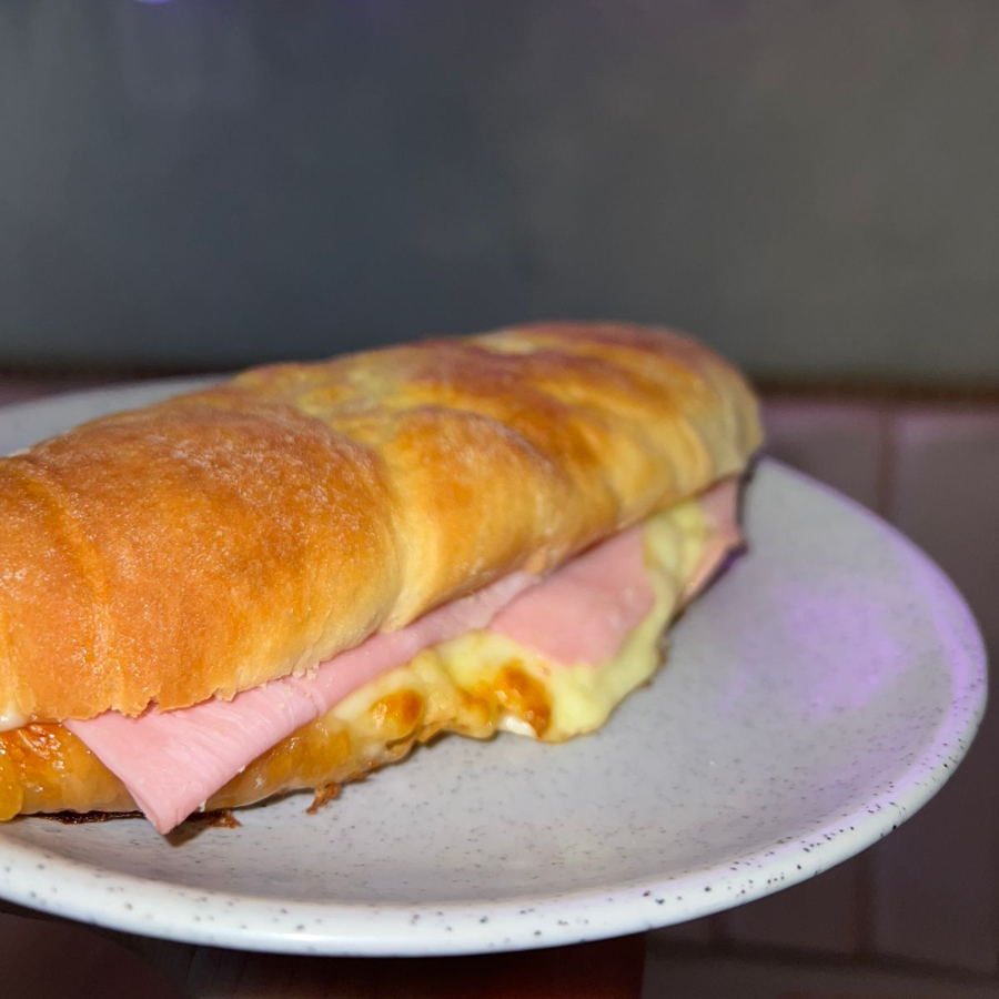 (Pão brioche amanteigado, presunto, requeijão, manteiga, molho bechamel e queijo gratinado Sant Paulin)