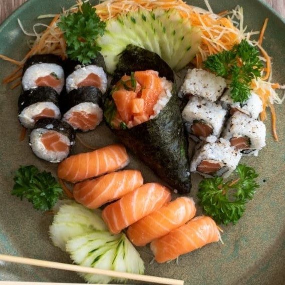 5 sushis a sua escolha, 5 sashimis a sua escolha, 5 makimonos a sua escolha e um refrigerante 200ml