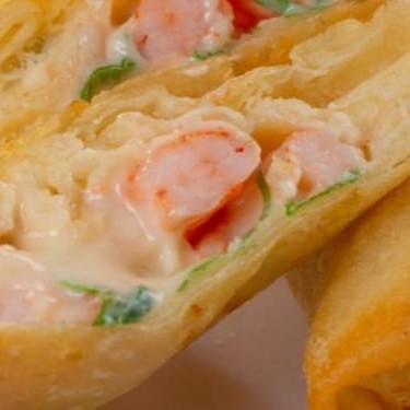 Arroz, camarão, cream cheese e cebolinha na massa de rolinho primavera