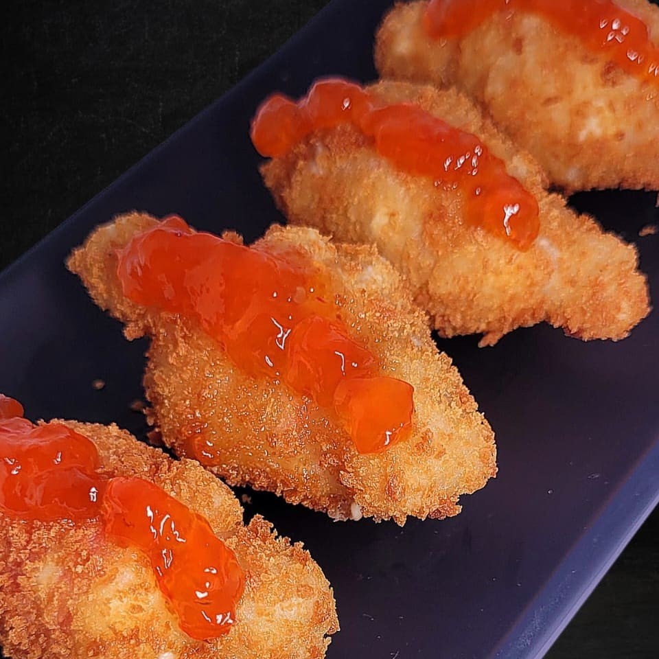 Temaki de haddock, cream cheese e cebolinha, empanado e frito