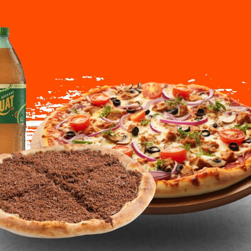 O combo perfeito para quem quer salgado, doce e bebida num só pedido! Leva uma pizza gigante salgada de 45cm com 16 fatias e borda de requeijão cremoso (sabor a sua escolha), mais uma pizza pequena doce de 25cm com 4 fatias (ideal como sobremesa) e ainda um refrigerante de 2 litros bem gelado para completar!
