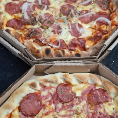 As queridinhas da casa! Nossas pizzas Fámlia de 35cm são perfeitas para quem quer muito sabor, fartura e custo-benefício. Com 12 fatias generosas e borda de requeijão cremoso, são ideais para compartilhar com a família, amigos ou em datas especiais. Diponíves em diversos sabores, todos com massa leve, recheios caprichados e tradicional!