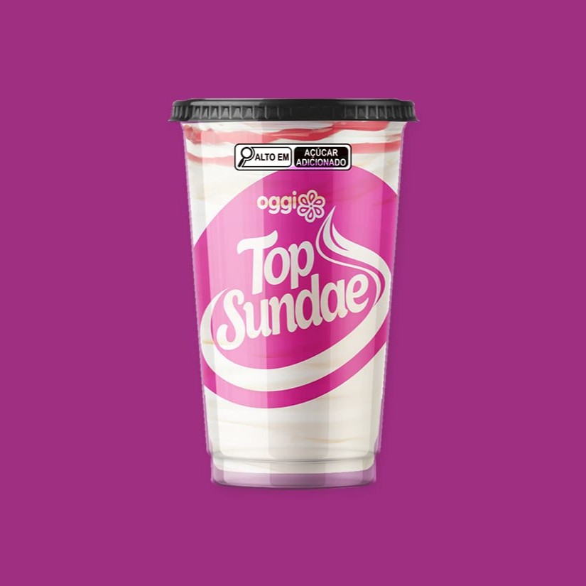 Sundae de morango, perfeito para os amantes de frutas. Alérgicos: Contém glúten, amendoim e derivados de leite e soja. Pode conter derivados de castanhas.