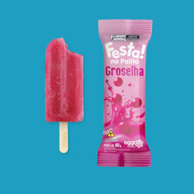 Picolé de iogurte com frutas vermelhas, delicioso e doce. Alérgicos: Contém glúten, derivados de leite e soja. Pode conter derivados de castanhas