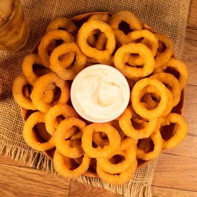 Uma porção generosa com 15 crocantes anéis de cebola, empanados e fritos até ficarem dourados e irresistivelmente crocantes. Perfeitos como um aperitivo delicioso ou acompanhamento, servidos com um molho especial para mergulhar. Uma opção saborosa e crocante que garante satisfação em cada mordida.