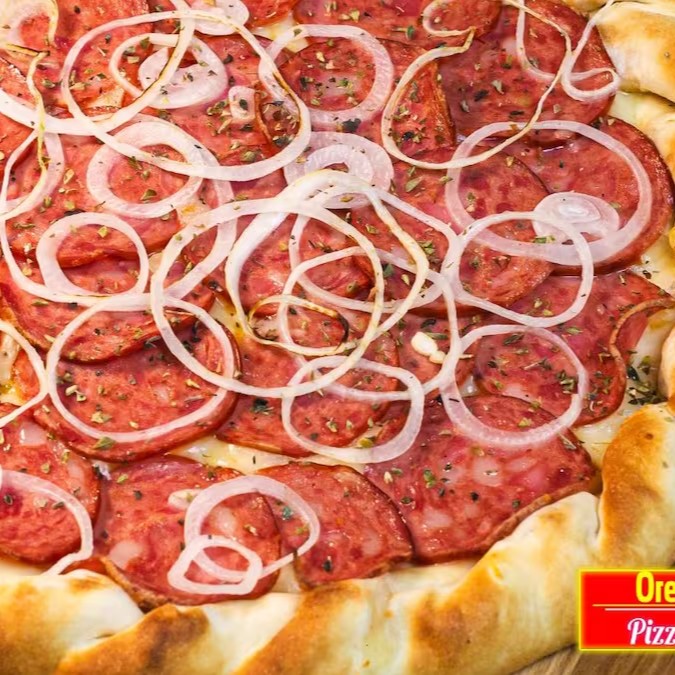 Molho, mussarela, orégano, cebola, cream cheese e calabresa