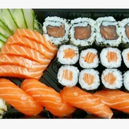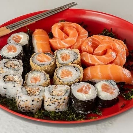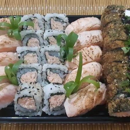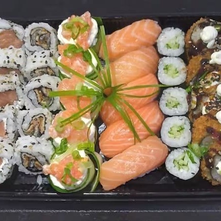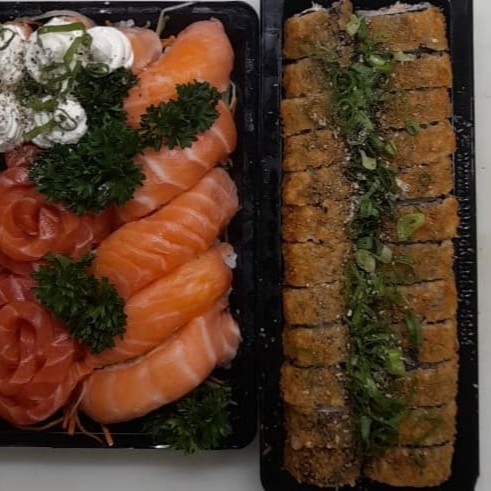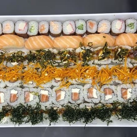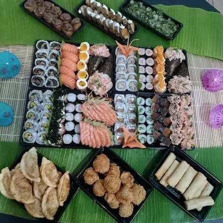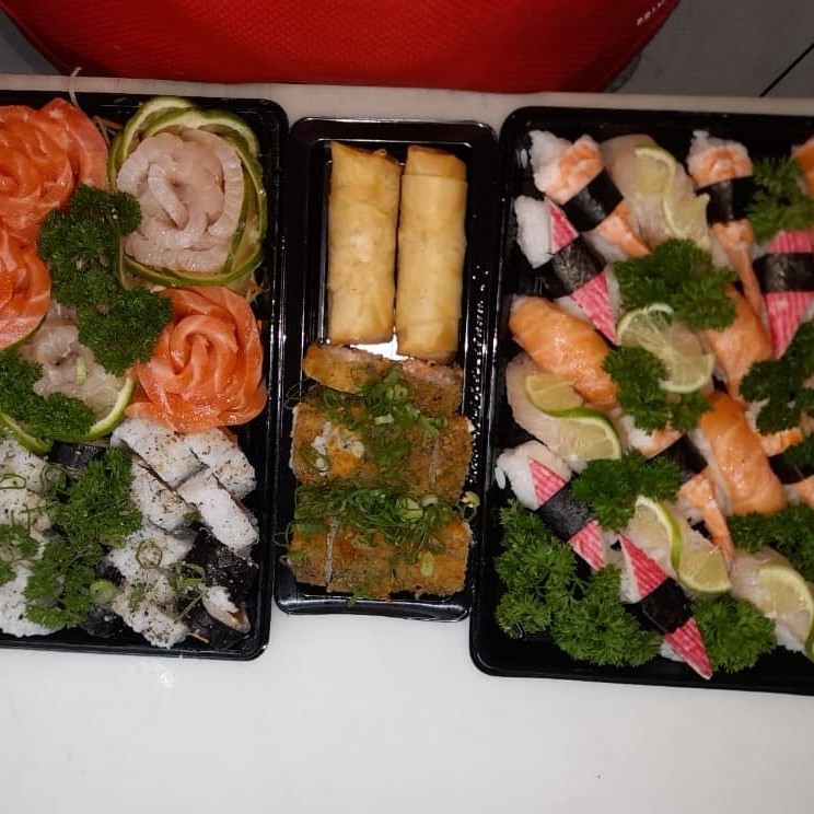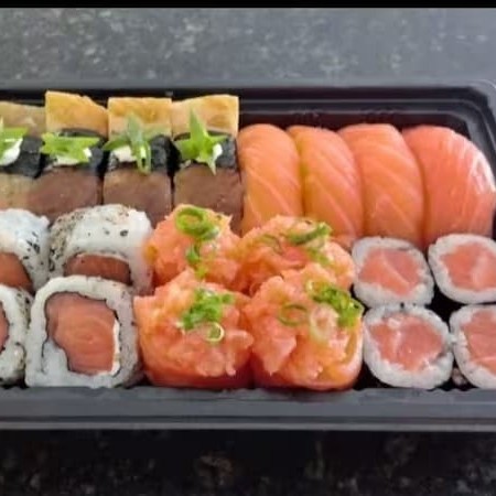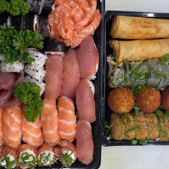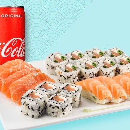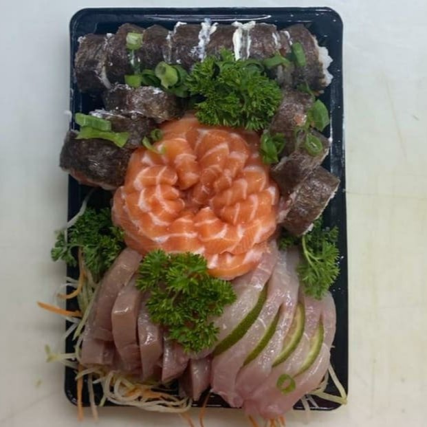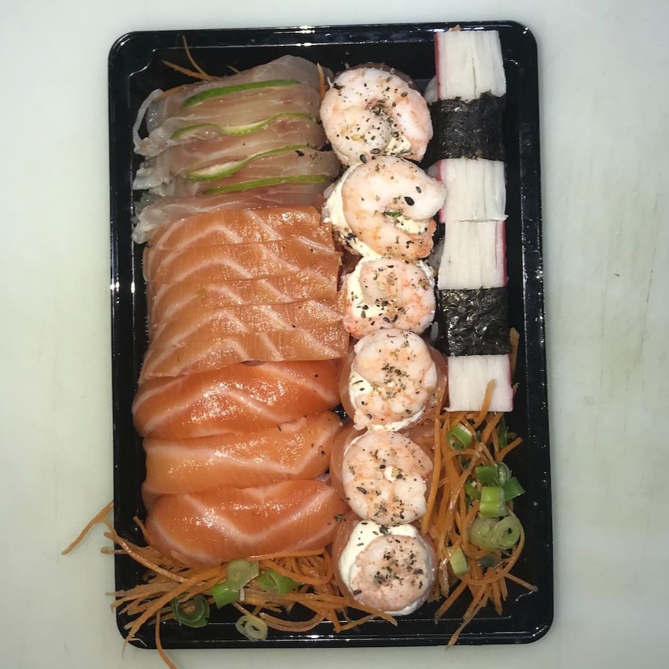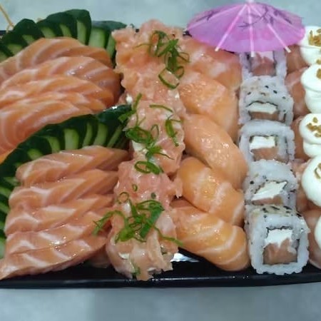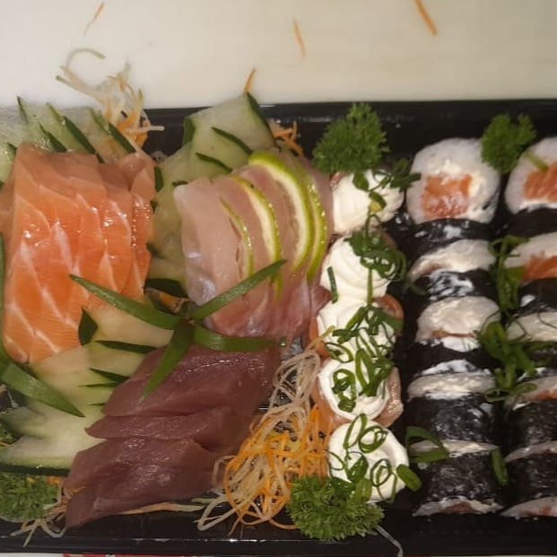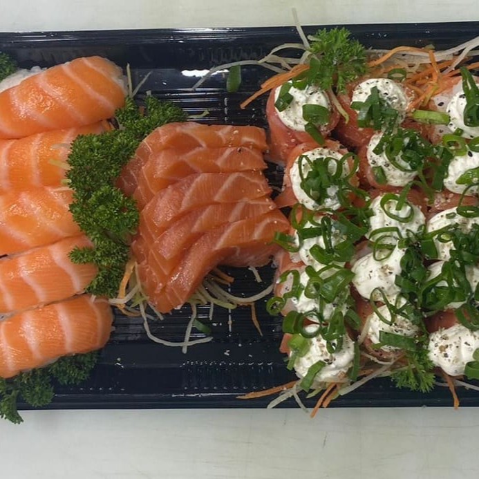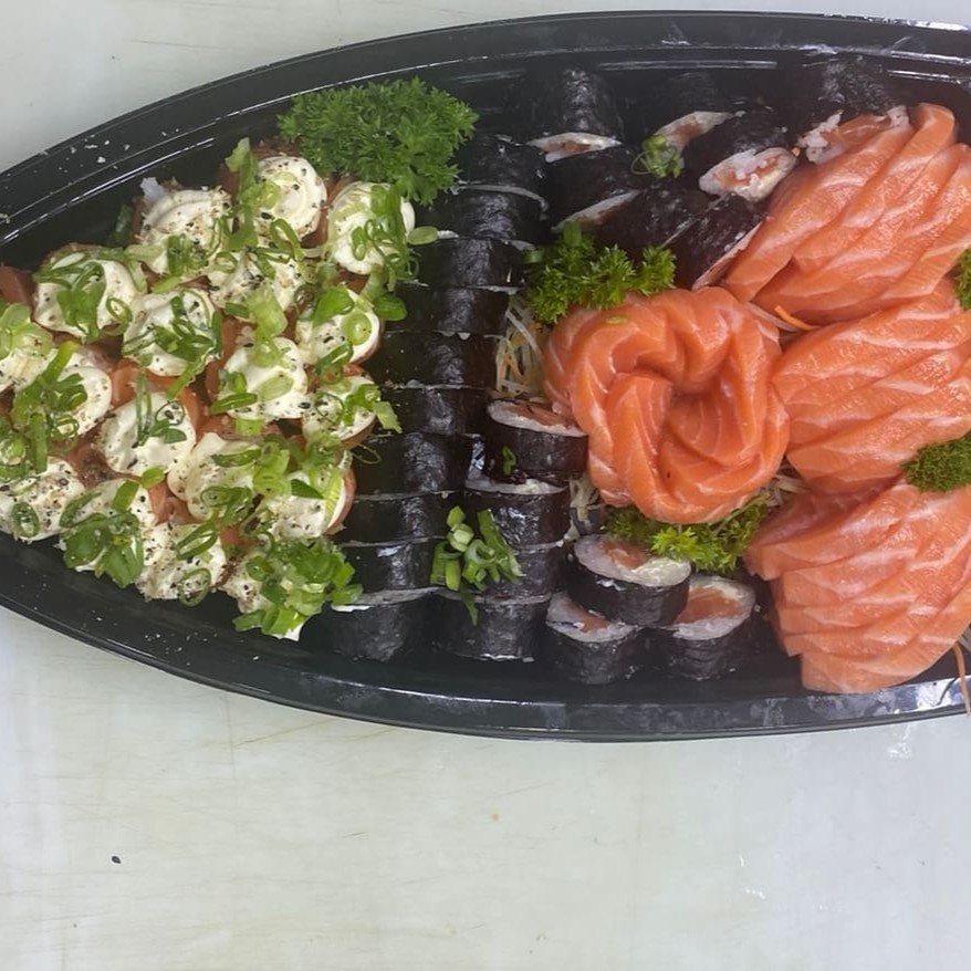 10 Sashimis Salmão, 5 Sashimis Peixe Branco, 5 Sashimis Atum, 12 Philadelfia Salmão, 12 urmaki Salmão