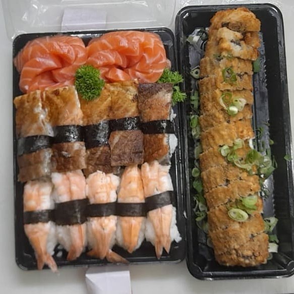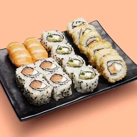 3 Salmão Boll - 6 Hot Philadelphia Tradicional - 6 Hot Philadephia Crocante - 6 Philadephia - 6 Uramaki Salmão - 10 Sashimi Salmão - 5 Sashimi Atum - 5 Sushi Salmão - 5 Sushi Atum - 5 Joe Joe Tradicional - 6 Ebi Cheese -2 Harumaki Chocolate - 2 Molho Teriaki.
