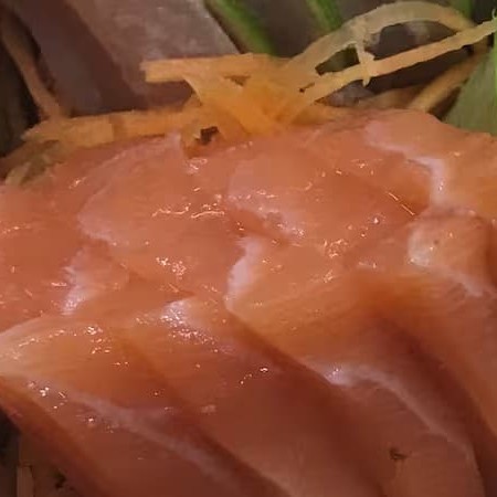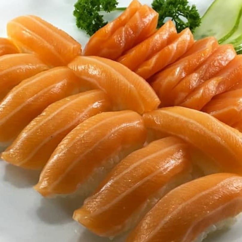 10 Fatias de Sashimi 5 Joe Salmão 5 sushi Salmão 5 Joe Alho 5 uramaki Salmão