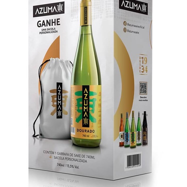 1 unidade - Saquê Azuma Dourado Sake Seco 740ml 1 unidade - Bolsa Personalizada Azuma