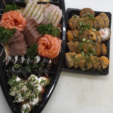 10 Sashimis Salmão, 10 Sashimis Atum, 10 Sashimis Peixe Branco, 24 Philadelfia Salmão, 24 Uramaki Philadelfia Salmão, 10 Joe tradicional.