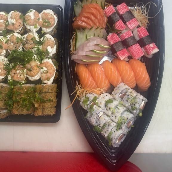 24 Philadelfia, 10 Sashimis Salmão, 10 Sashimis Peixe Branco, 6 Joe tradicional.