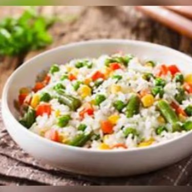 Acompanhamento: arroz e salada de legumes