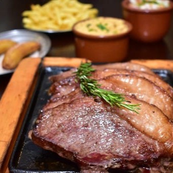 A Picanha Inteira é um prato típico da culinária brasileira. Delicie-se com um suculento e tenro steak de picanha maturada, preparado com primor e habilidade. Acompanha duas saborosas linguiças de pernil, cuidadosamente assadas para realçar o sabor. O arroz soltinho e o feijão caseiro trazem aconchego e lembranças de refeições em família. A farofa crocante adiciona uma textura irresistível ao prato. As batatas fritas, douradas e crocantes, são o complemento perfeito. Por fim, o vinagrete fresco e temperado na medida certa, adiciona um toque de frescor. Uma verdadeira festa de sabores!