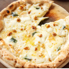molho de tomate, mussarela, gorgonzola, parmesão e catupiry