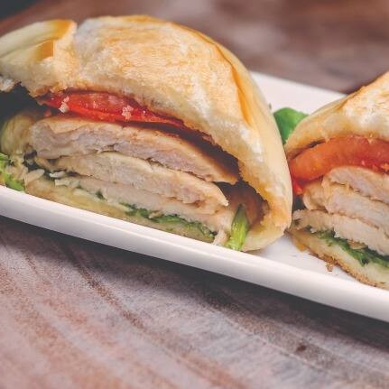 Sanduíche feito na chapa, combinando um generoso recheio de peito de peru com queijo minas, aquecidos em um pão francês integral ou pão de forma integral