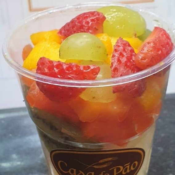 A salada de frutas consiste em uma combinação de deliciosas frutas picadas.