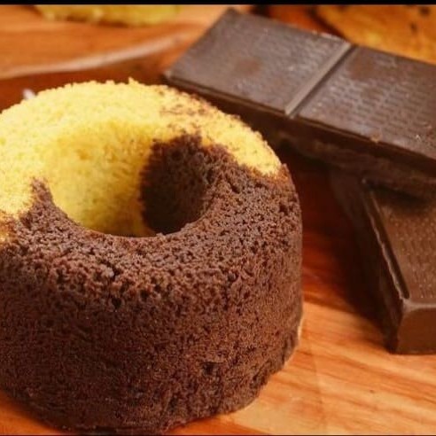 Bolo caseiro muuuito fofinho metade choc. E metade baunilha. Dica: faz um café para acompanhamento ;) (18cm - aprox. 400g)