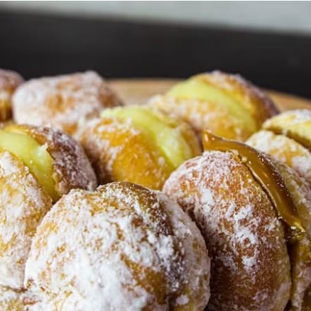Mini sonho de doce de leite com açúcar e canela.