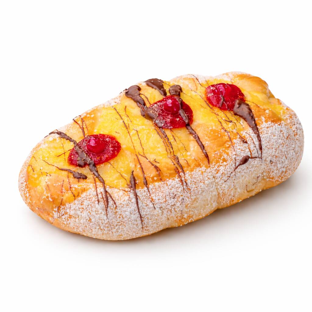 Este Pão Doce Mini Colegial vem recheado com um irresistível creme de confeiteiro, que derrete na boca, e uma generosa camada de goiabada super cremosa que proporciona um contraste perfeito. A maciez deste pequeno deleite é incomparável, tornando cada mordida um prazer. Finalizado com um toque de açúcar cristal por cima para adicionar uma doçura crocante. É o mimo perfeito para qualquer momento do
