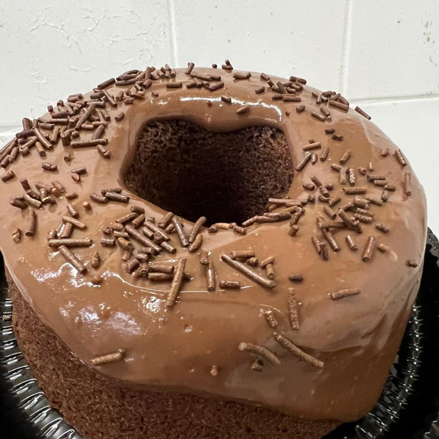 Massa semi doce c/ cobertura de creme de confeiteiro finalizada com brilho doce